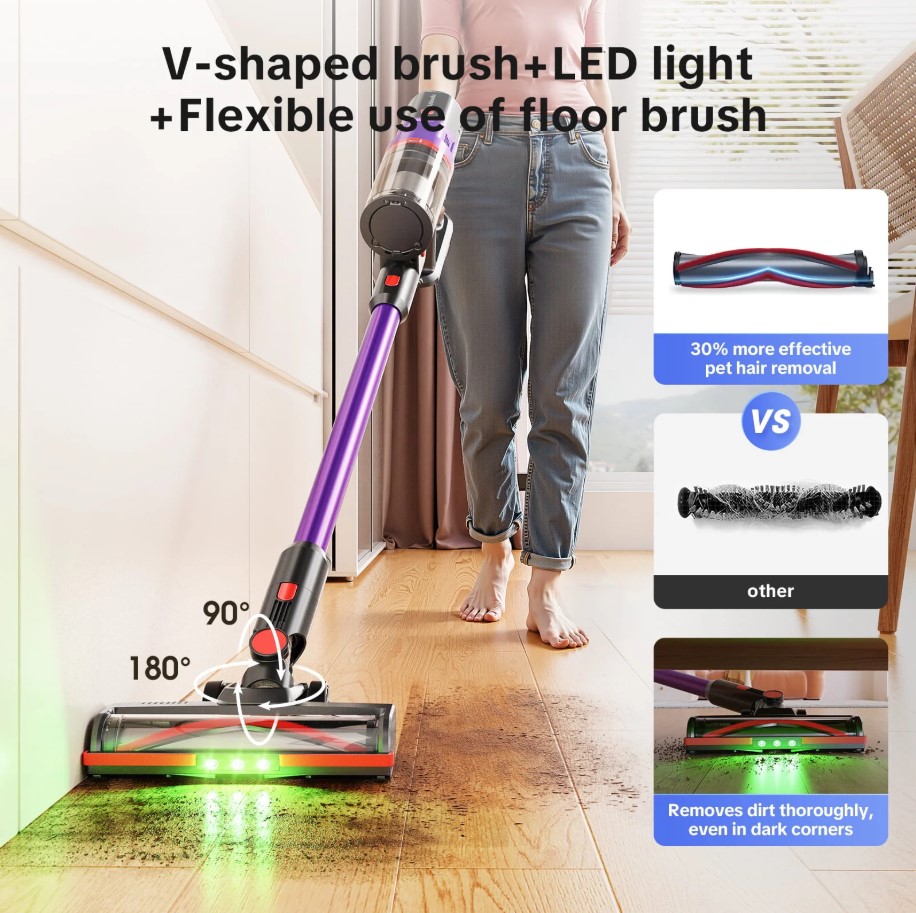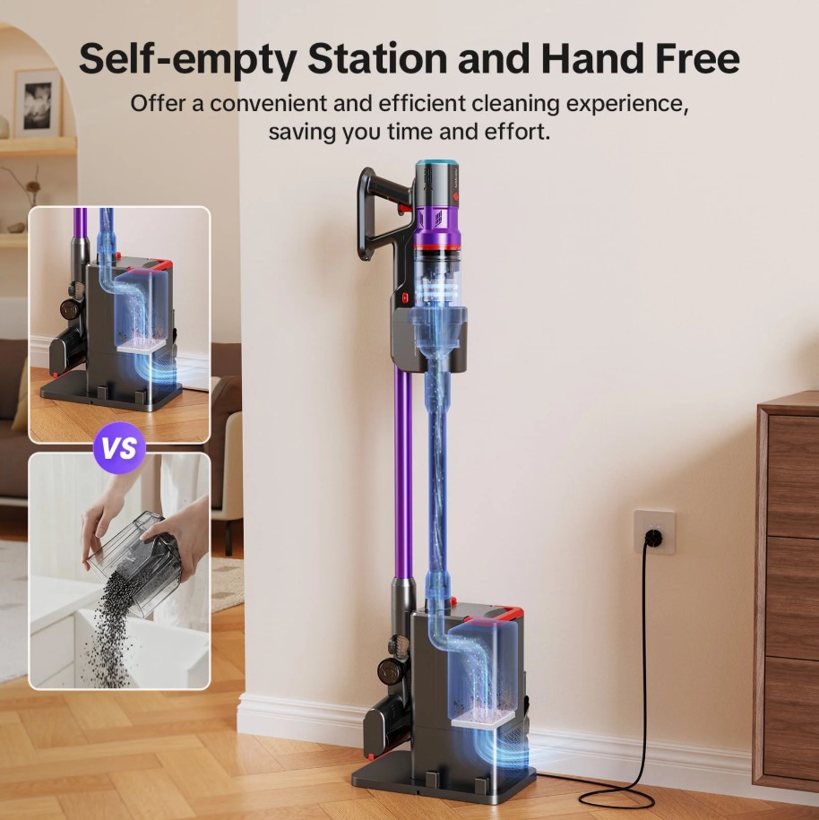 Zariadenie je poháňané 400 W bezkefkovým motorom, ktorý zabezpečuje dôkladné vysávanie tvrdých podláh aj kobercov.