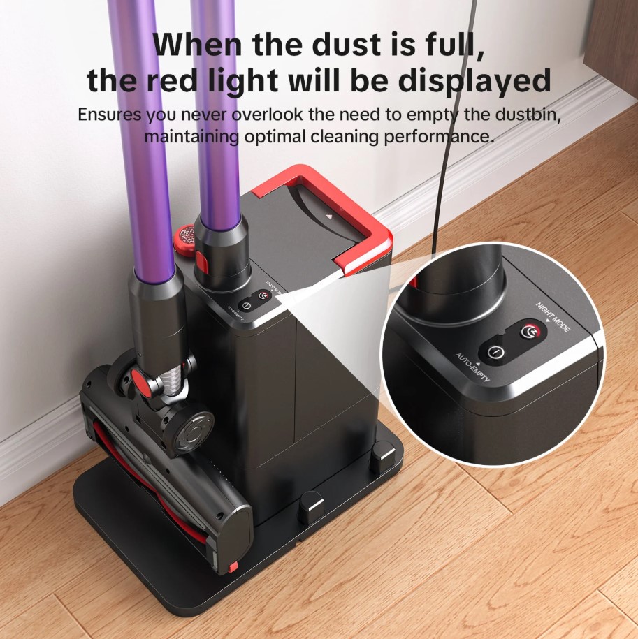 Integrované nabíjanie: Dokovacia stanica funguje ako aktívna nabíjačka. Hneď po odložení vysávača sa automaticky spustí proces dobíjania. Netreba tak hľadať kábel ani manuálne pripájať konektor, vďaka čomu je zariadenie neustále pripravené na ďalšie upratovanie.